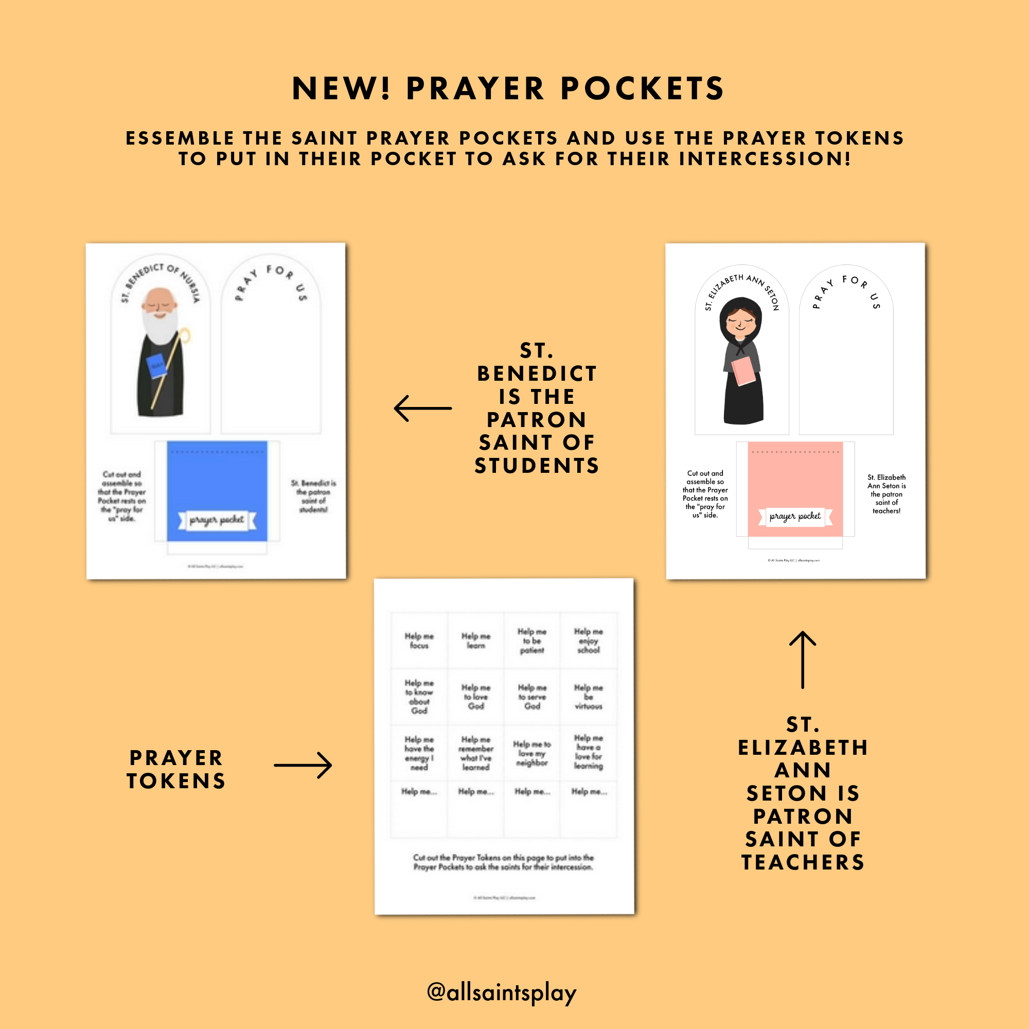 NEW! St. Benedict & St. Elizabeth Ann Seton Prayer Pockets