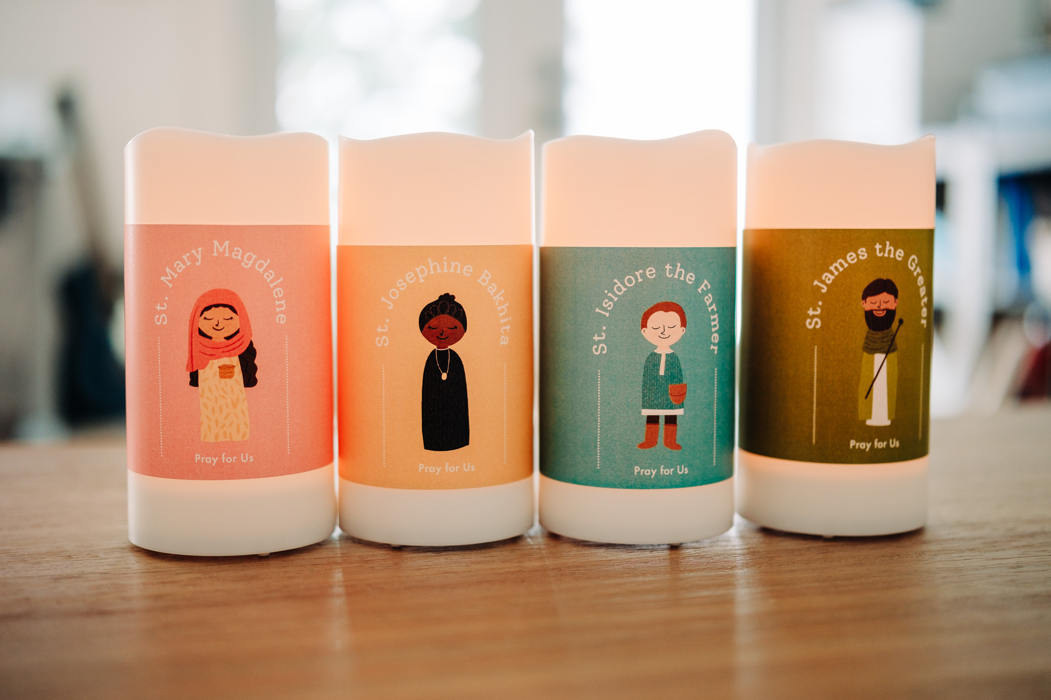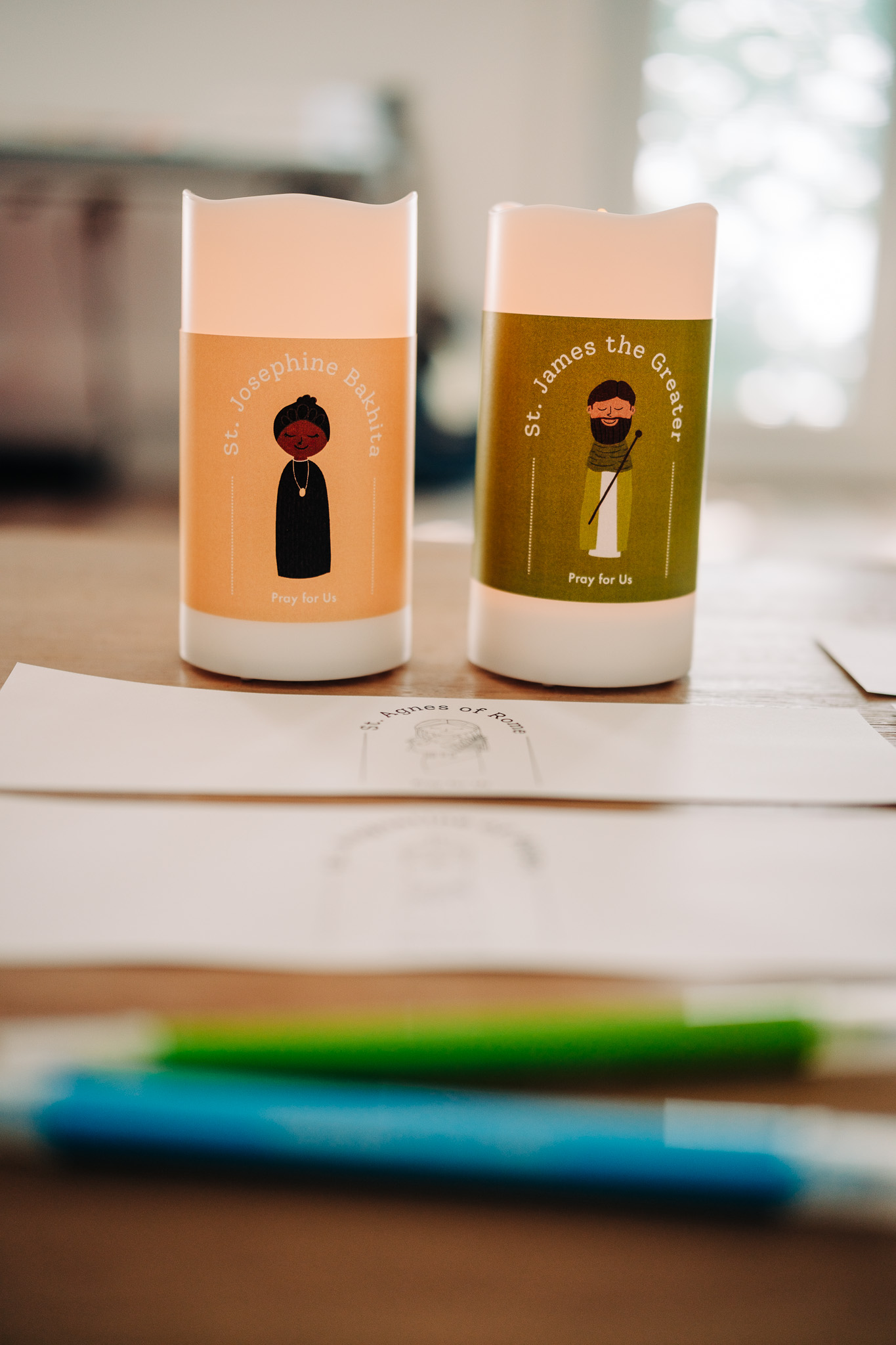 • 70 Saint Candle Covers (with a full-color & coloring version)