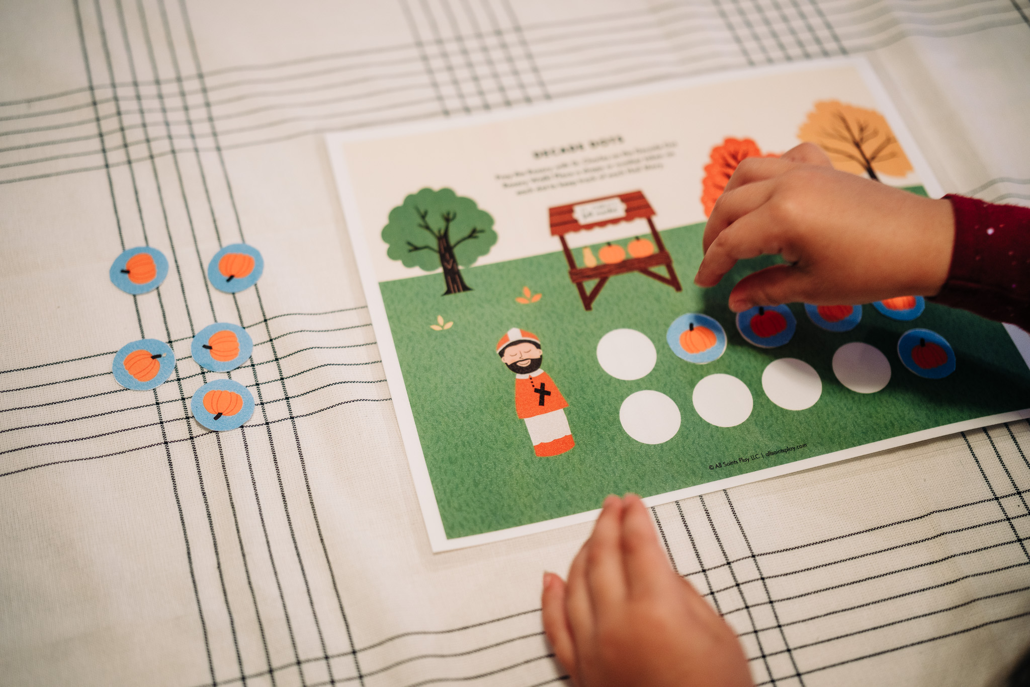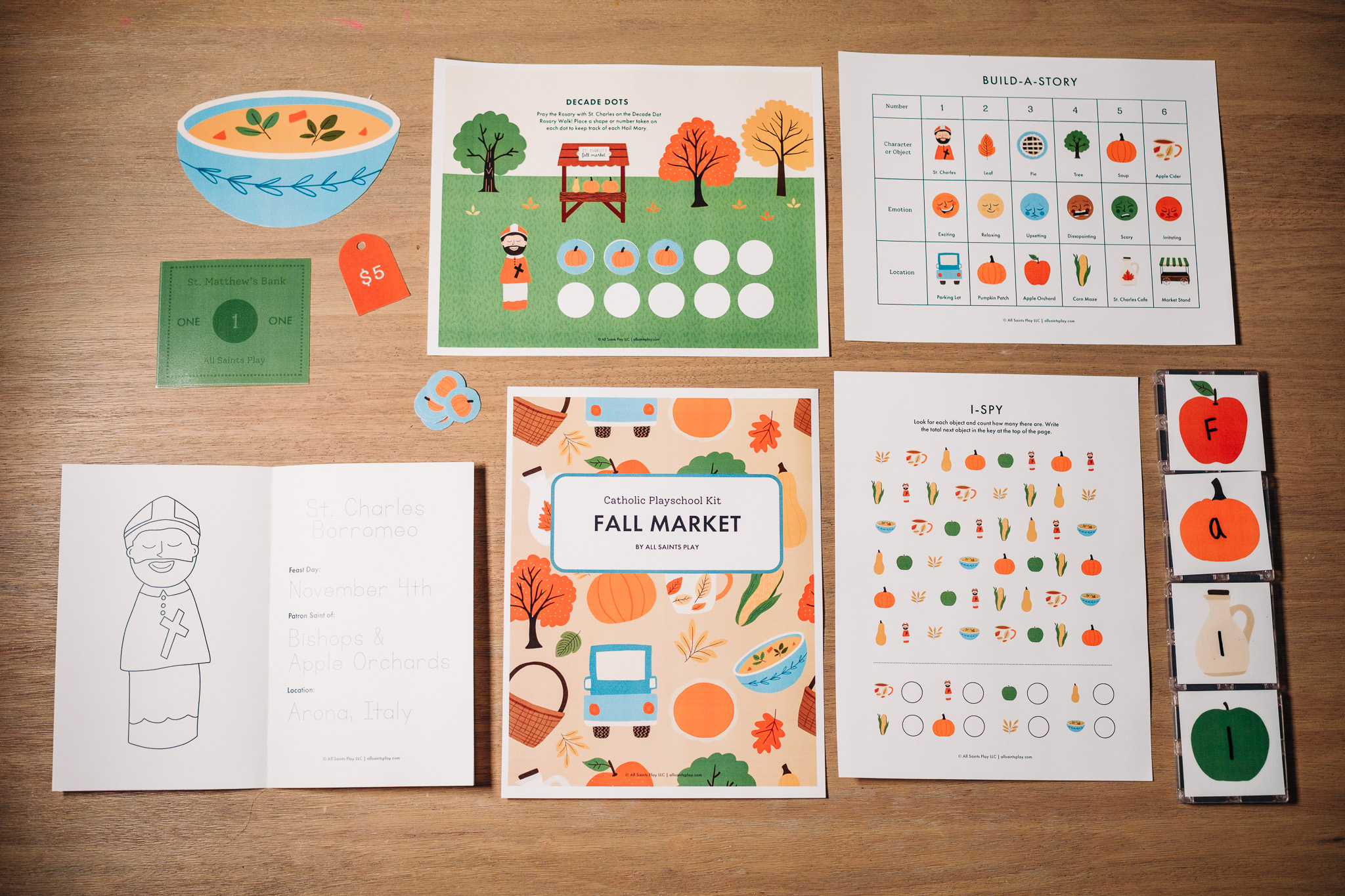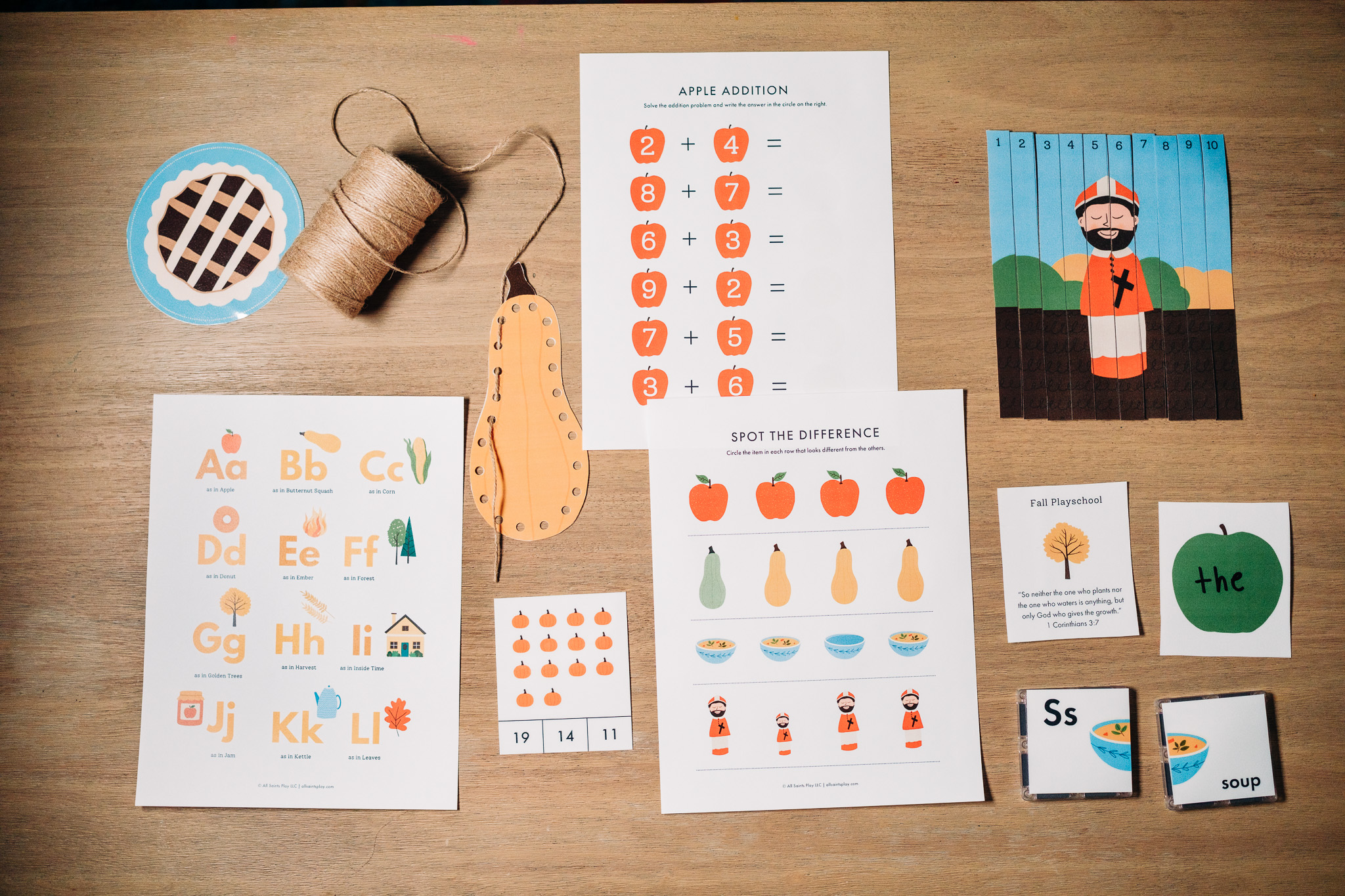 • Extra enrichment: virtue apple tree, gratitude activities, word search, and I-Spy