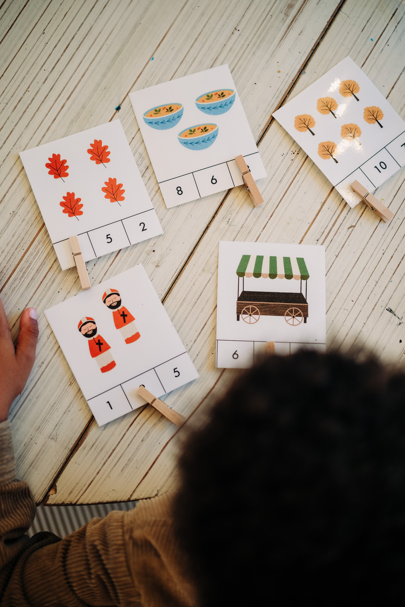• Math activities: count & clip, apple addition & subtraction, ten frames, puzzle strips, and apple size sort